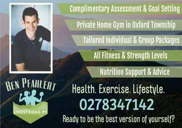 five Thinking of selling? There's no better time than now. Call me today for a no obligation, free appraisal from your local real estate salesperson. (REAA 78 MAIN STREET, OXFORD 03 312 4397 OR 51 MAIN WEST ROAD, SHEFFIELD 03 318 3876 e. sales@sheffi eldpieshop.co.nz www.sheffi eldpies.co.nz Monday - Friday 6:30am - 4:00pm | Saturday & Sunday 7:00am - 4:00pm Celebrating 20 years in busine ! Shane & Loretta would like to say thanks to all of our amazing customers so join us on Friday 7th October for a slice of anniversary cake to celebrate We l k forward to s ing you . Comfortable travel in Jaguar The airport Appointments | Meetings Shopping • Tours 24/7 door to door pick up and drop off. Early morning & late evening. Travel in comfort, we will get you there on time without the stress. No parking hassles or fees. Time + Travel + Mileage + Convenience = Best Rates in North Canterbury “CHEAPER THAN TAKING YOUR OWN CAR” P | enquiries@oxfordtransfers.com www.oxfordtransfers.com LET US TAKE THE STRESS OUT OF YOUR TRAVEL ARRANGEMENTS OXFORD Competition 2022 The Oxford Garden judging will be held in the first week of February 2023 (Wednesday, Thursday or Friday) We invite you to enter in one of the categories listed below. 1. WALK AROUND The entire garden to be judged 2. VIEW FROM THE STREET Judges view garden without entering 3. TOWN HOUSE 4. GARDEN UNDER 3 YEARS A gift voucher will be awarded to each of the first 3 place getters in each category, and the OB&I League Cup will be awarded to the overall winner. PLEASE