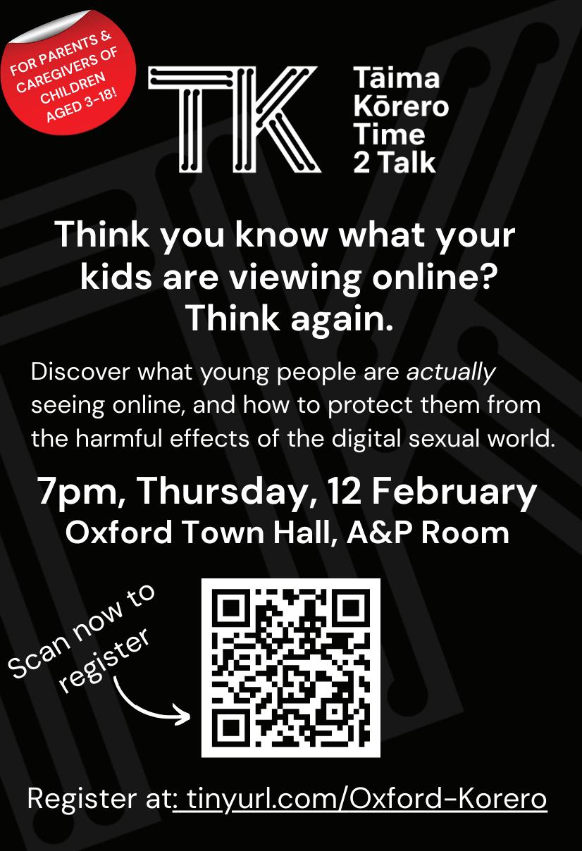 As well as the two school events, at the students instigation, the community is hosting Brett Harvey from Tāima Kōrero - Time 2 Talk on Thursday 12th February. This evening will be an engaging, honest and sensible information on how to talk about pornography with your child or teenager, and why these conversations need to happen.