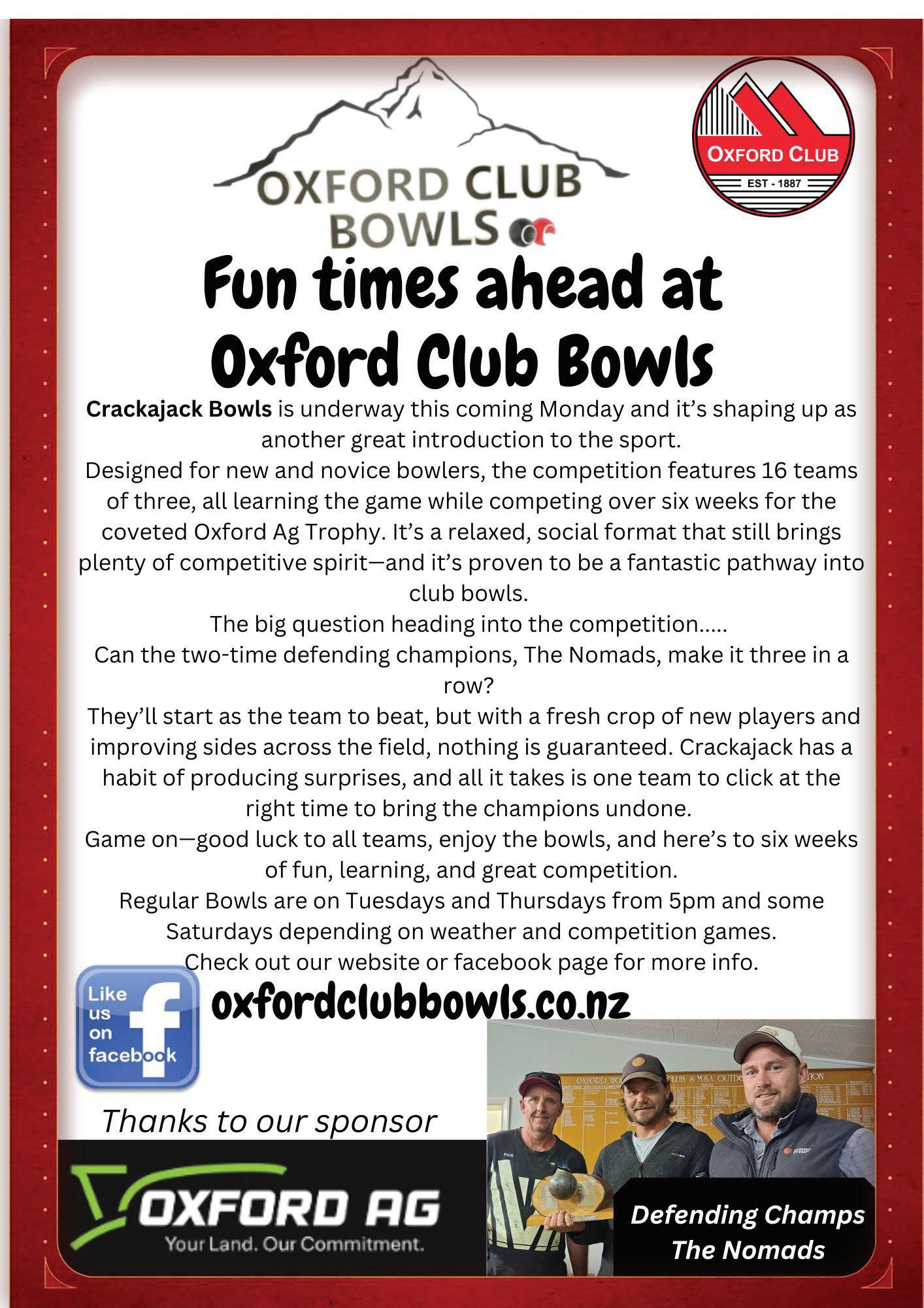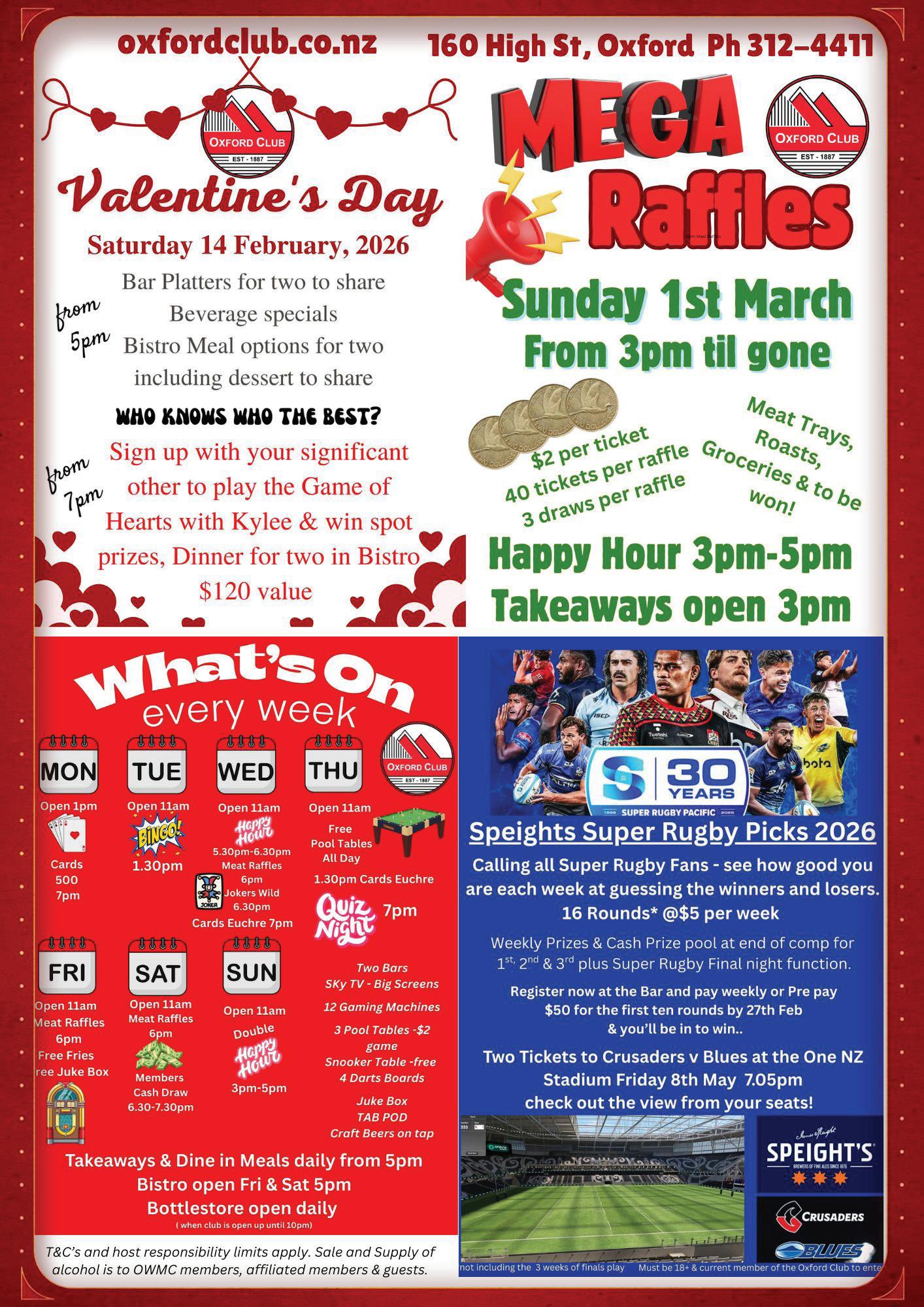 We have a bumper year planned for activities, events and entertainment, so come on down to the Oxford Club.
