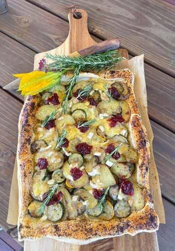 With Christmas over, and the garden producing more courgettes than we can consume, here’s a simple delicious tart that tastes of summer!