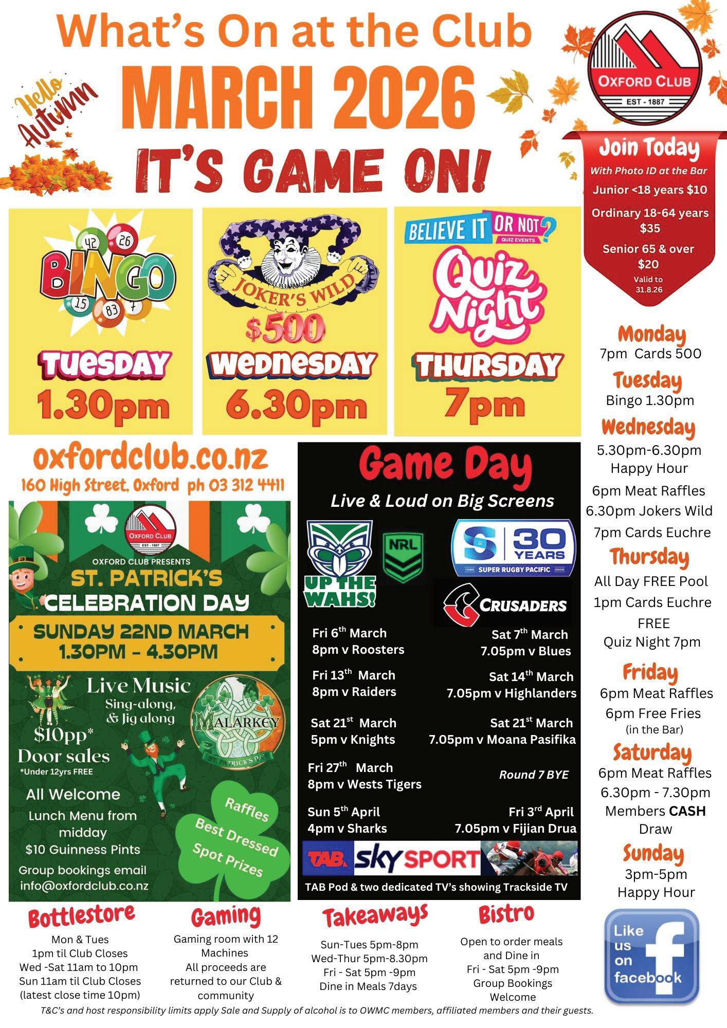We are lucky to have a community Club/Hub in Oxford which has served Oxford and district since 1887. Rules that set standards re: behaviour and conduct help ensure that the Clubs reputation remains second to none in our wider community.