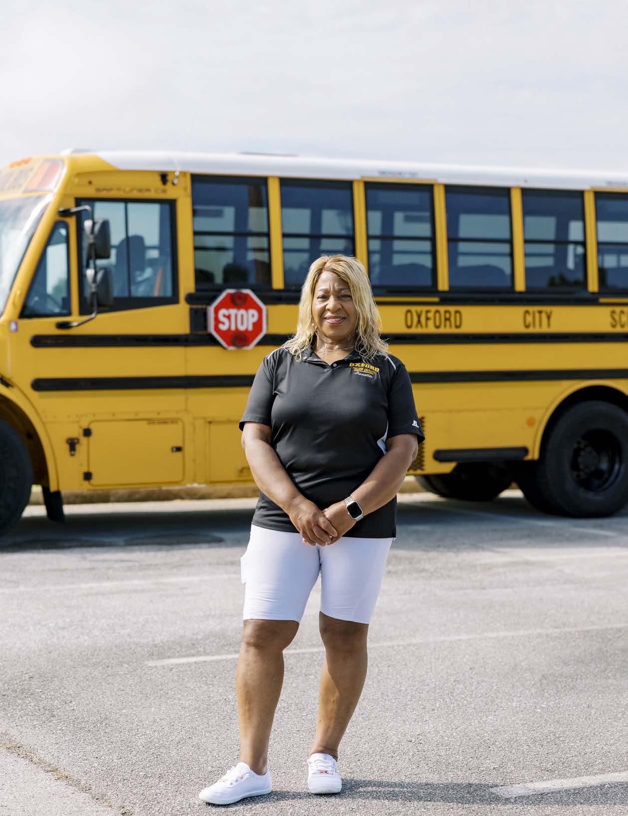 Driving a school bus is an extremely significant responsibility, and it takes a special blend of skills and temperament to do it well. I often tell my children and others, “Whatever goal or job you choose in life, make sure it’s doing something you love.” That way, you won’t be stressed getting up every day to succeed in it. I can definitely say I love driving the H-Bus for Oxford City Schools.