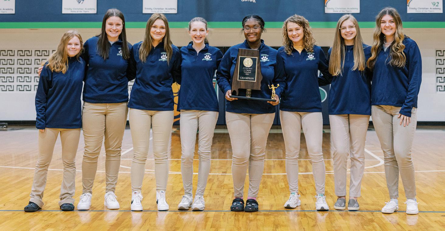 TThe Trinity Christian Academy varsity volleyball team won back-to-back state championships in Division 1A of the Alabama Christian Athletic Association (ACAA) as they wrapped up a successful 2022 campaign. They also completed the season undefeated in region and area play for the second year. Their regular season record was 12-3, with additional successes in several weekend tournaments.
