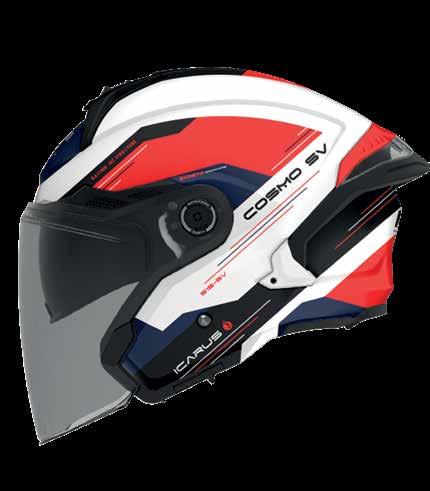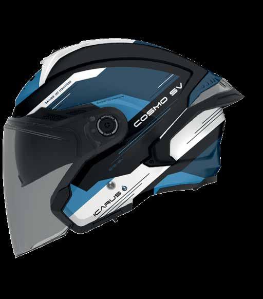Retractable Sun Visor with a protection level close to 100% thanks to a system designed to attach to the Nose Deflector. This offers increased protection from light and prevents vision loss from glare.