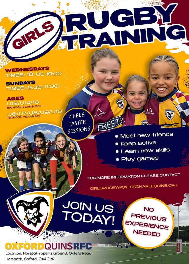 To find out more, please ask, get involved via an online search for Oxford Harlequins on Pitchero, and sign up to see the exciting matchday programmes for a preview of the teams and sponsors