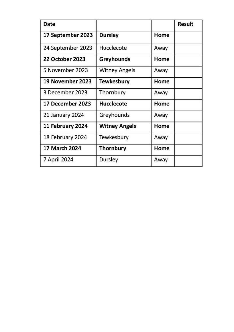 W O M E N ’ S 2 N D X V F I X T U R E S
