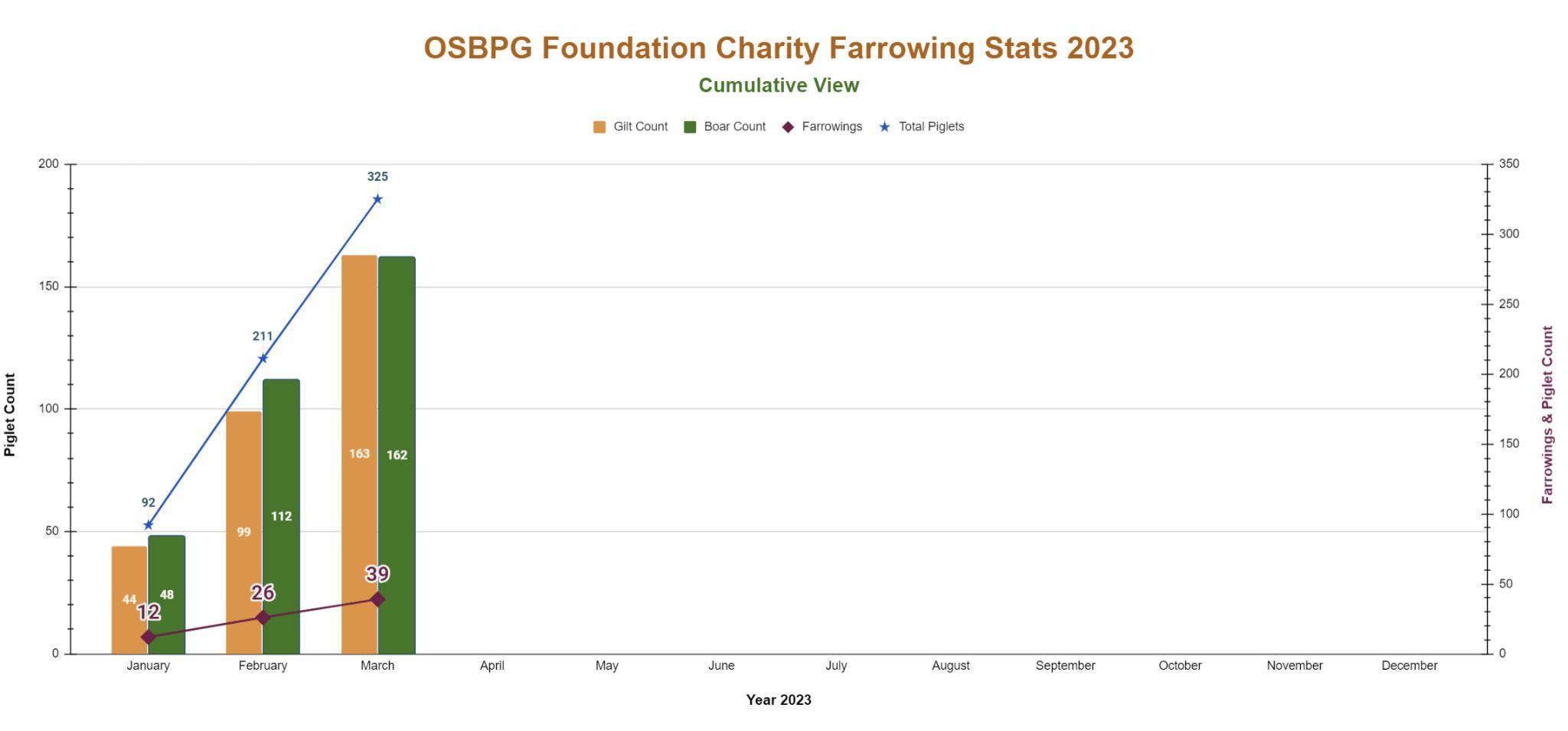 When considering the female bloodlines, we are proud to announce that we have achieved recorded farrowings from every bloodline at an unprecedented early stage in the year.This remarkable accomplishment is a testament to the hard work and dedication of our breeders. We also attribute this success to the positive impact of our Genetic SpreadAllowance program. Over one-third of the recorded data stem from lines that our charity has supported in 2022 by distributing much-needed bloodlines across the UK.