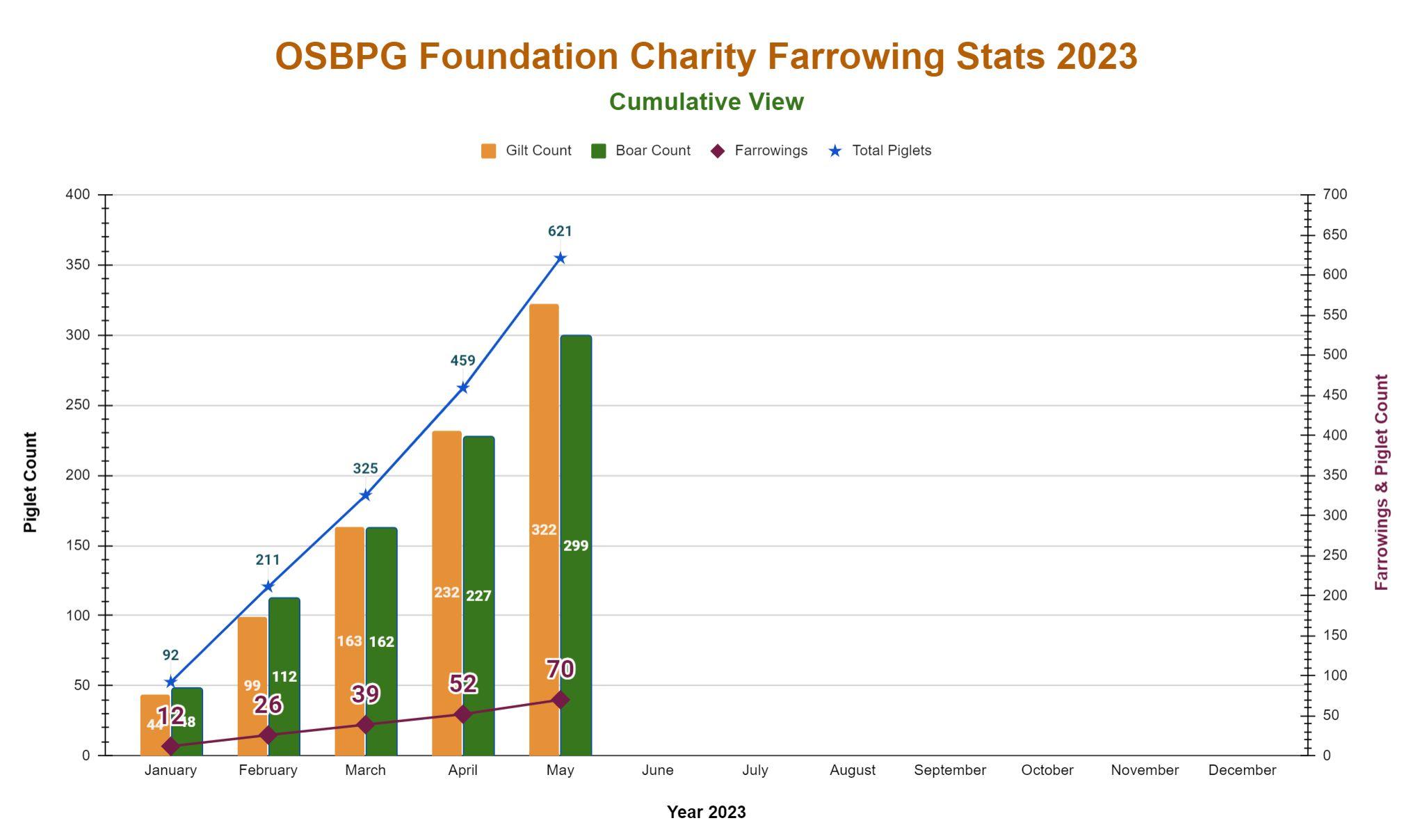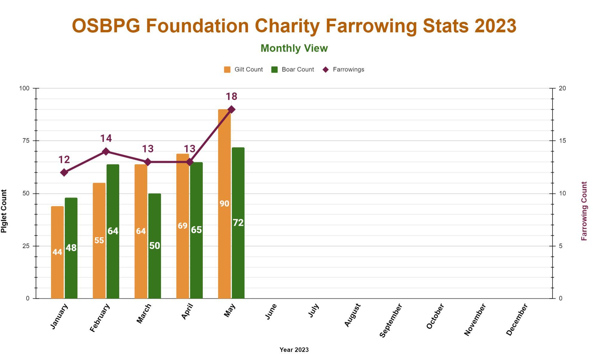 May showcased the Central region's success, with Cynthia and Jack producing 12 piglets.The South West region experienced a mixed outcome, as Sybil andAlistair resulted in 5 piglets. Wales showcased the combination of Gertrude and Jack, leading to the birth of 3 piglets.