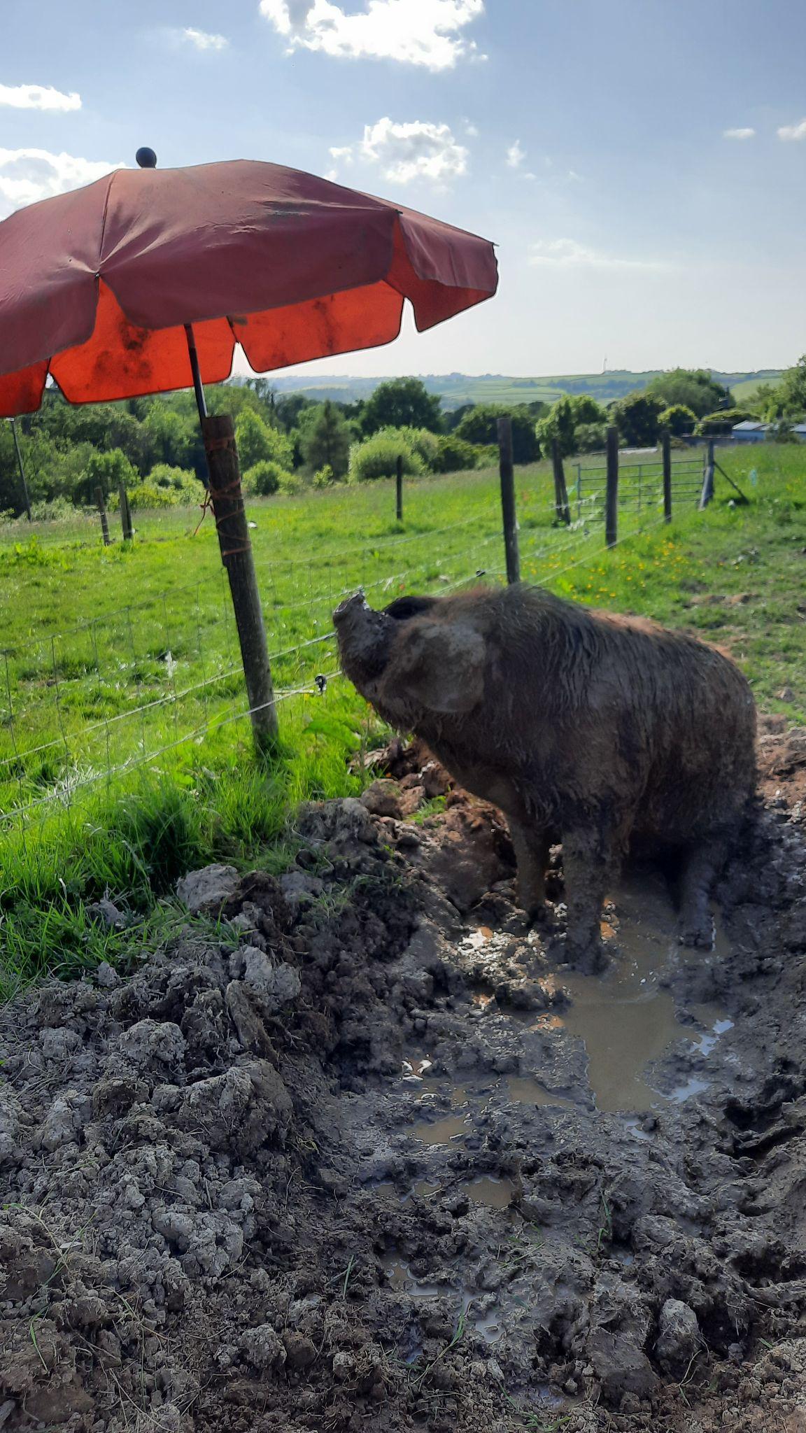 Work does not stop, for us pig keepers even when it’s dry and neither does getting covered in mud, although that may just be me. Waters to change, wallows to keep filled and muddy snouts being rubbed on us and keeping our pigs cool is all in a day's work.