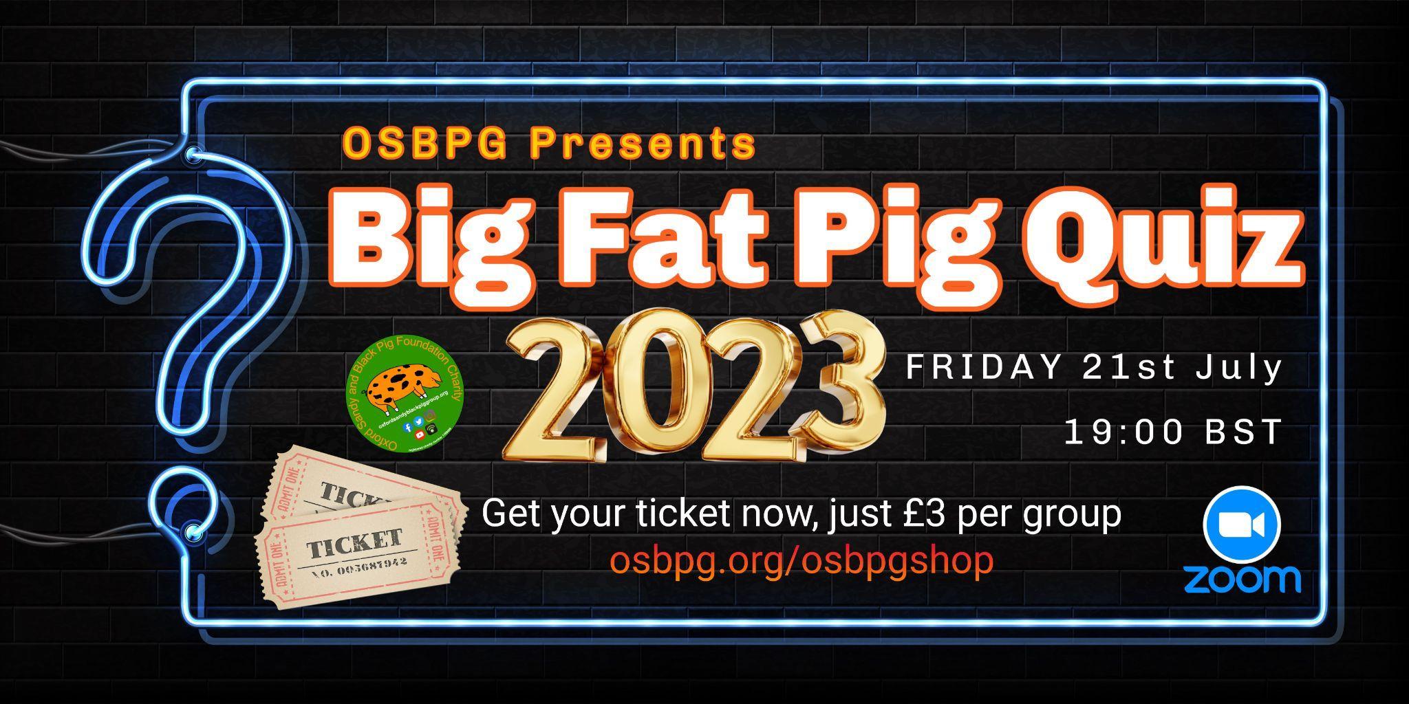 Get your ticket to the OSBPG Big Fat Pig Quiz 2023. £100 prize for the Winner