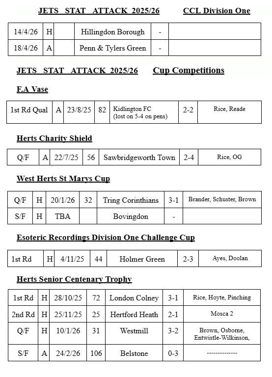 Herts Snr County League Pauline Mary Fox Trophy Winners