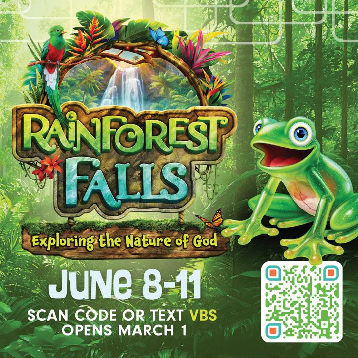 Rainforest Falls VBS is June 8-11 from 9am-12pm. Registration opens on March 1st. Volunteer spots open as well and we hope you consider helping this year. It is such a meaningful experience, and we have big and small ways to support this ministry. Text VBS. thiss february 27 6pm-12:15am