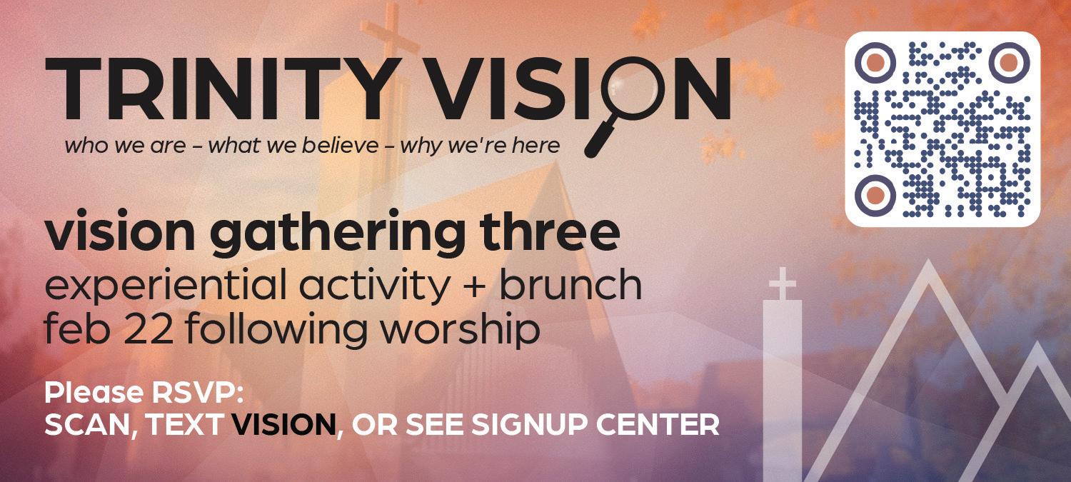 To sign up & stay updated check the weekly bulletin, emails, or visit TrinityLongLake.org/Outreach.