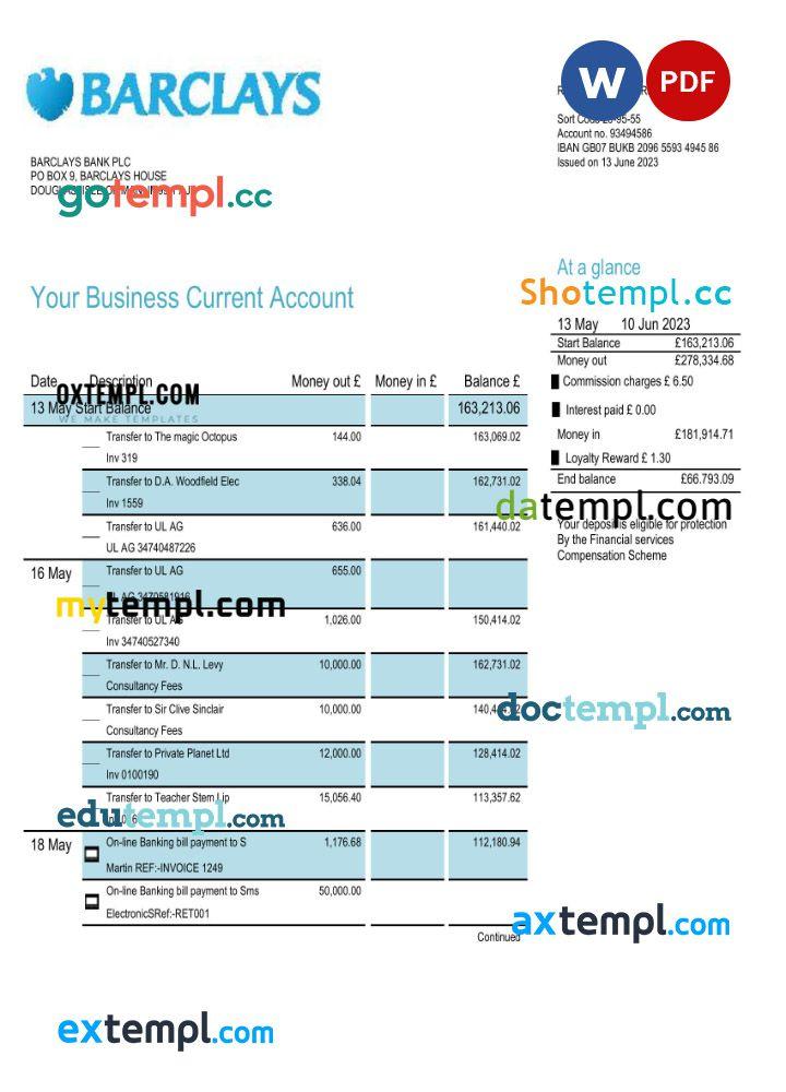 A business bank statement is a summary of all of your business transactions for a specified statement period. It includes an account summary and information about your bank, business, and bank account. A business bank statement includes an account summary, also known as a transaction history, which includes the following: