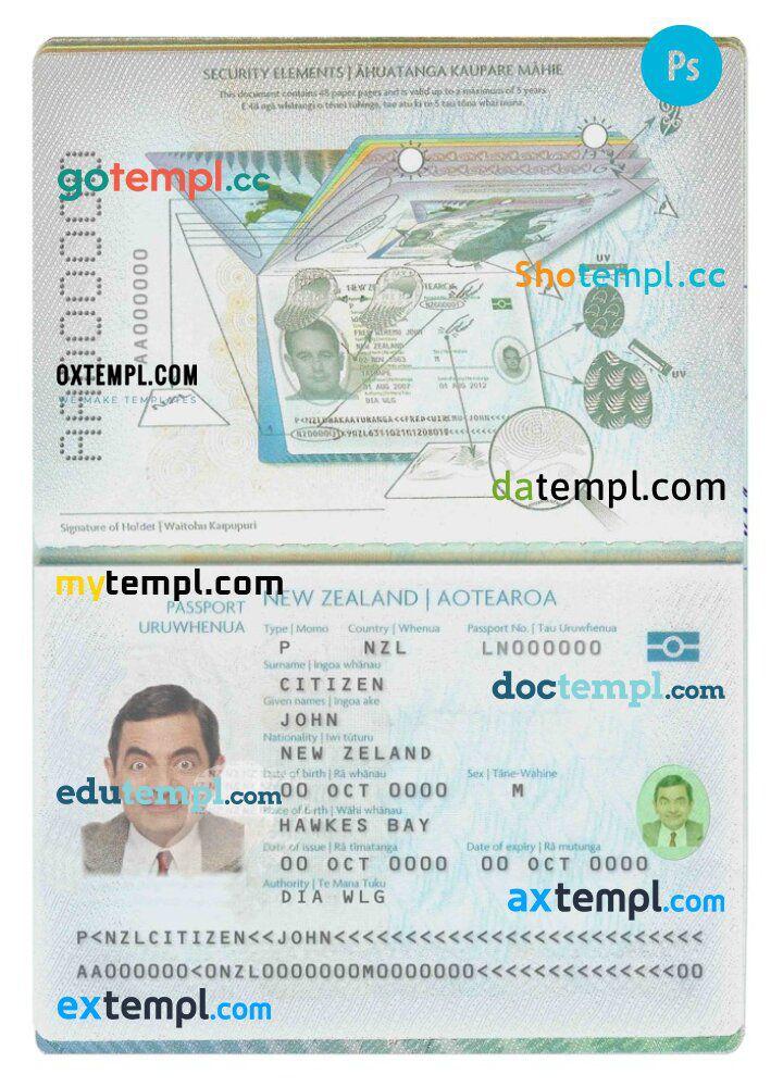 New Zealand passport template in PSD format, fully editable (2009-2016)