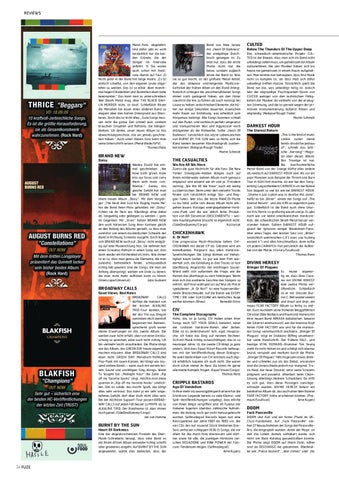 Band aus New Jersey mit „Heart Of Darkness“ der endgültige Durchbruch gelungen ist. Zu blöd nur, dass die dritte Platte nicht nur die beste, sondern zugleich letzte der Band ist. Was sie so gut macht, ist der größere Metal-Anteil, der das teilweise anstrengende MathcoreGefrickel der frühen Alben an den Rand drängt. Natürlich schlagen die unvorhersehbaren Songs immer noch genügend Haken, um den Hörer sowohl in die Irre zu führen als auch nonstop bei Laune zu halten. Jedoch haben Elemente, die früher nur einige Sekunden dauerten, inzwischen mehr Raum zur Entfaltung, was erheblich zum Hörgenuss beiträgt. Alle Songs kommen schnell auf den Punkt, sind technisch perfekt umgesetzt und transportieren Wut und Aggression noch drängender als die Frühwerke. Sollte „Heart Of Darkness“ tatsächlich das letzte Lebenszeichen von BURNT BY THE SUN sein, so hätte sich die Band keinen besseren Abschiedsgruß ausdenken können. (Relapse/Rough Trade) Martin Schmidt