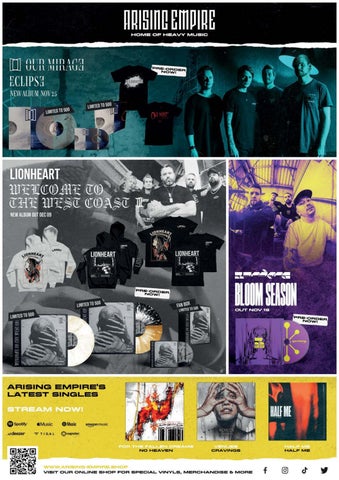 INDEX 05 STAND UP STACY Melodie und Text 05 LE TTERS SENT HOME Neustart 0 6 MINUS YOUTH Track by track 07 MAGNOLIA PARK Meine Plattform 08 WI THIN DESTRUCTION Alles neu 09 AC TION / ADVENTURE Eine inklusivere Szene 09 PINKSHIFT My Timeline 10 UP & COMING 12 WE C AME AS ROMANS Zehn Facetten von Trauer und Verlust 14 LIONHEART Die Trilogie 16 FJØRT Sie speien Gift und Melancholie 18 PAL E Back from the dead 19 L. S. DUNES You are the friendships that you keep 2 0 LIOTTA SEOUL Das Auge hört mit 21 FIRE FROM THE GODS Corona-Jahre 22 FIT FOR A KING Würgegriff & Traumata 26 BROTHERS TILL WE DIE Soundtrack der besten Jahre 27 KOR SAKOW Wer