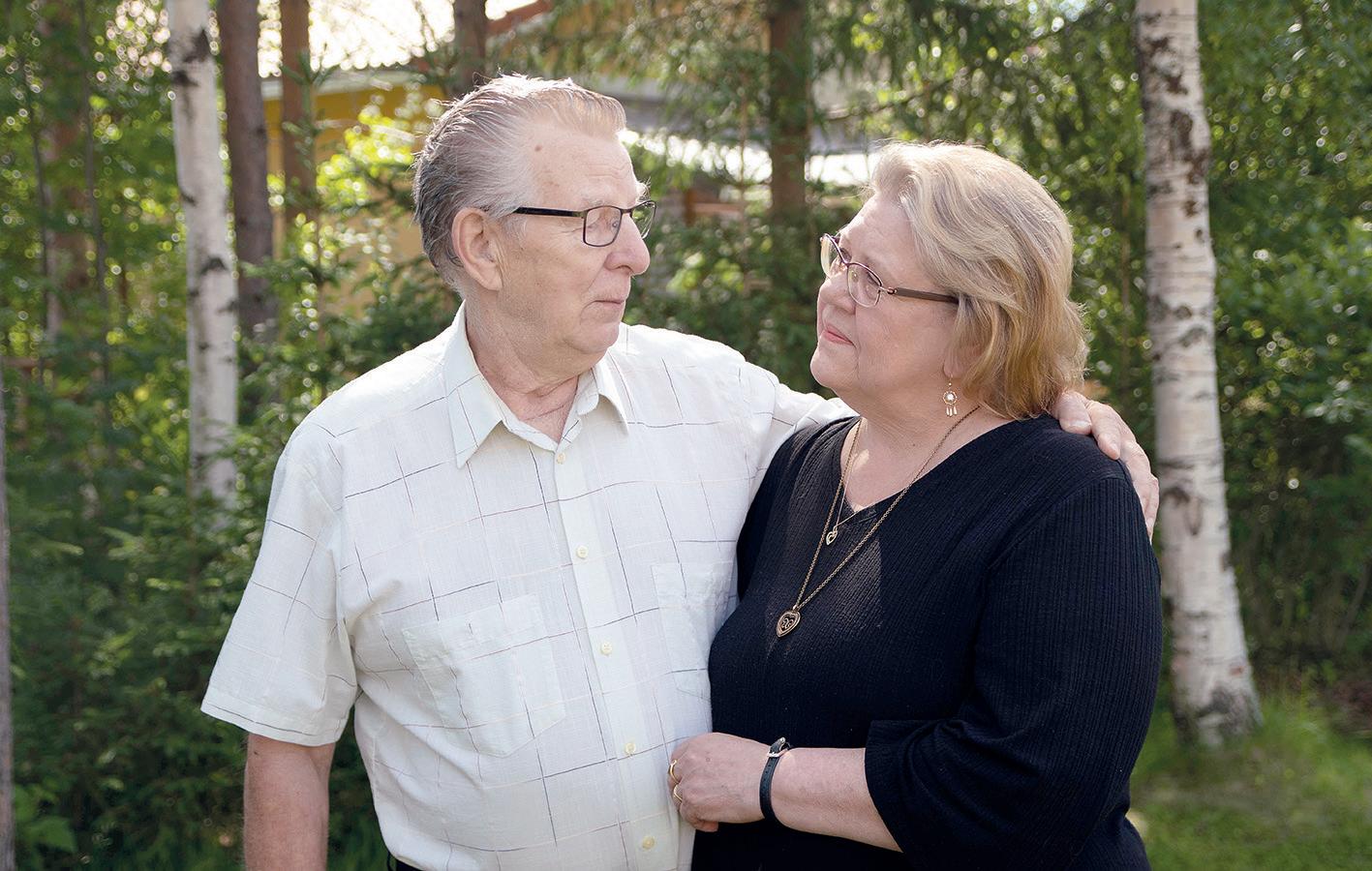 Pirjo jäi seitsemän vuot ta sitten eläkkeelle alaraajan liikuntavamman takia. Ennen sairastumistaan Jouko auttoi häntä esimerkiksi raskaiden ostoskassien kantamisessa.