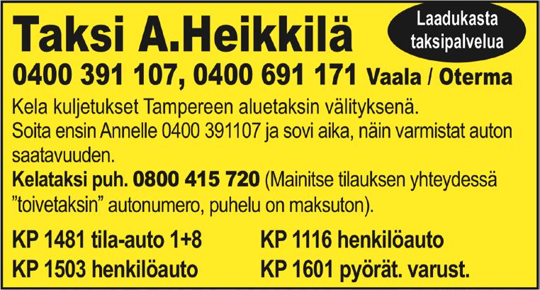 Mediamyynti/toimitus: Raimo Klasila, p. 044 242 8040, raimo.klasila@kotipitaja.fi