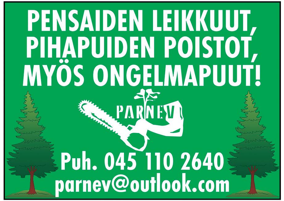 Nro 7 ● 5.4.2023 12 Seuraava Kotipitäjä 19.4. www.lumorakennus.fi KATTOREMONTIT, ULKOVERHOUKSET, SADEVESIJÄRJESTELMÄT SEKÄ MUUT KODIN REMONTIT LAATUTAKUULLA TOTTAKAI! LUMO RAKENNUS OY | Matias Luokkanen p. 045 276 6254 | info@lumorakennus.fi PYYDÄ ILMAINEN TARJOUS! LVI-työt Jari Karppinen lvikarppinen@gmail.com - urakointi - tuntityöt - tarvikkeet - uudiskohteet - saneeraukset puh. 040 709 4987