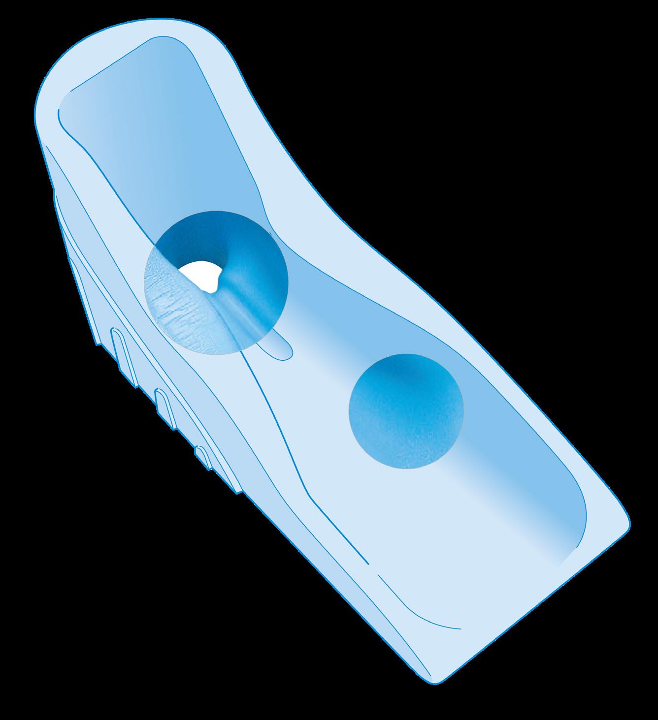 Speziell zur gleichmässigen Verteilung des Drucks des Unterschenkels konzipierte Wölbung