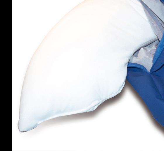 Die eingenähten Schnürsenkel des Halbmondkissens (013-0735) und des Seitenlagerungskissens (013-0737) erlauben es, eine an die Morphologie des Verwenders angepasste Positionierung festzulegen und auf Dauer aufrechtzuerhalten. Hierdurch verbessert sich der Komfort für die Person und optimiert sich die ergonomische Form des Hilfsmittels.