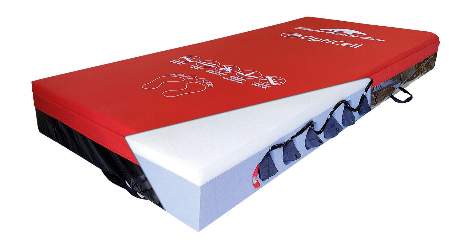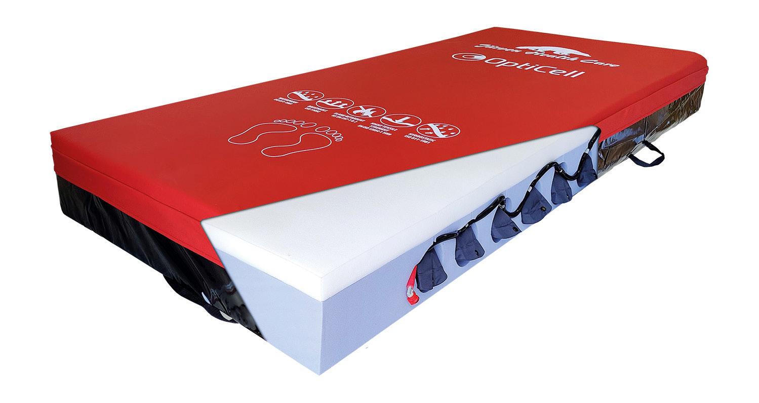 Das OptiCell SMART Matratzensystem wurde entwickelt, um Druckverteilung, Entlastung und guten Komfort zu gewährleisten. Alle Teile des Systems, einschließsslich der einzelnen Zellen und des Bezugs, wurden entsprechend angepasst.