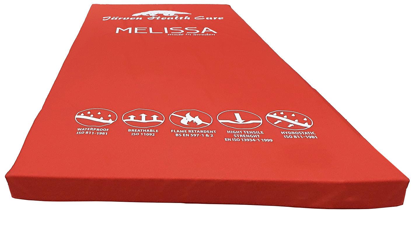 Die Melissa Parade-Matratzenauflage hat hervorragende druckentlastende Eigenschaften. Sie sollte in Kombination mit einer hochwertigen Matratze verwendet werden. Sie wurde zur Linderung, Vorbeugung und Behandlung von Druckgeschwüren bis einschließlich Kategorie 3 entwickelt. Die Matratze besteht aus 6 cm dickem Hypersoft-Schaum (45 kg/m3). Sie wird mit "RX5 Elastic" zur Befestigung an der darunter liegenden Matratze geliefert.