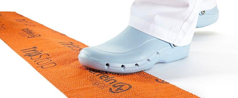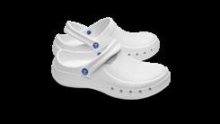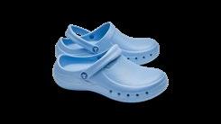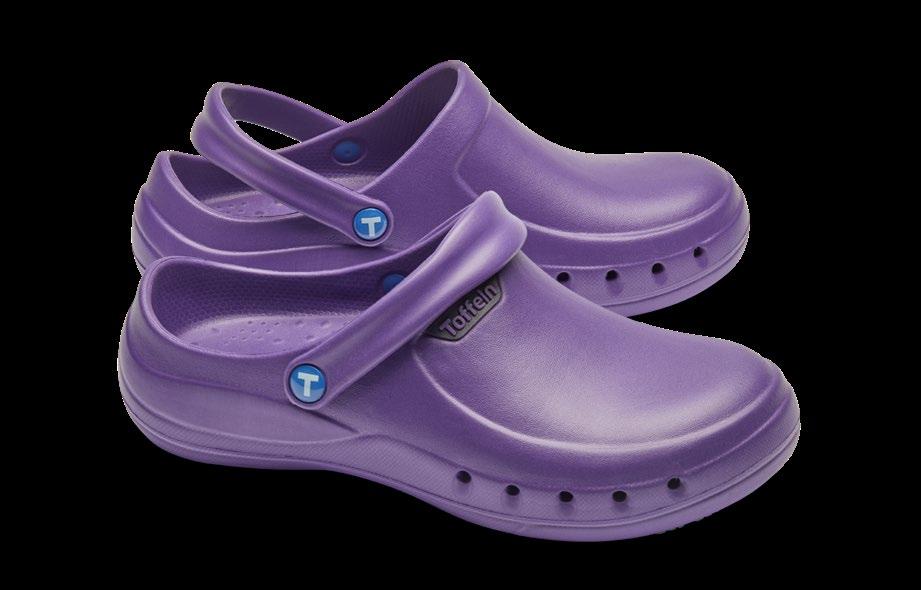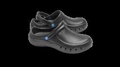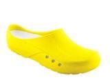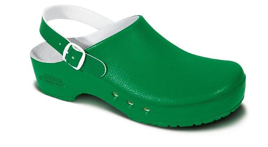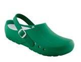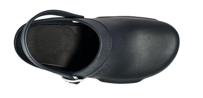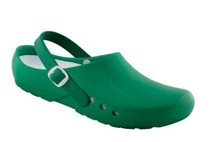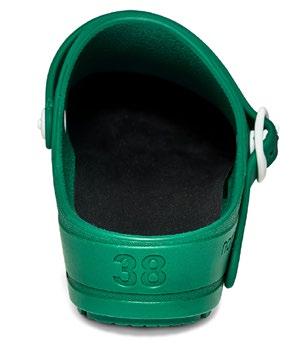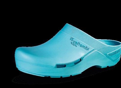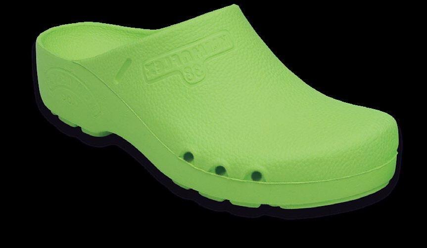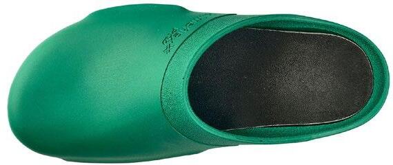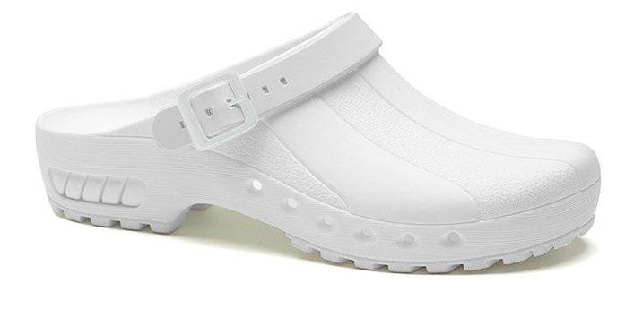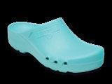 Modell ebenso die bekannten Eigenschaften mit: modernes Design, Antistatik, verbesserte Rutschhemmung und Hydrolysebeständigkeit. Der Clog ist vegan, sorgt mit überdachten Belüftungslöchern dafür, dass keine Flüssigkeit eindringen kann und das schockabsorbierende Material garantiert gute Dämpfung und Wohlbefinden.