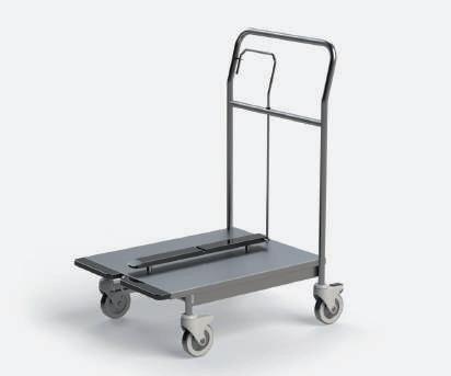 Poignées de guidage horizontales fixées sur les deux extérieur côtés. Roues en caoutchouc plein gris anti-trace avec cages à rouleaux inox de série.