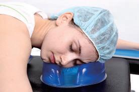 Das weiche Gelmaterial passt sich dem Kopf an und bietet ausreichend Halt und Komfort während der OP. Der offene Kopfring bietet Flexibilität zur Positionierung verschied. Patienten.