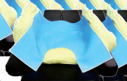 Besteht aus weichem Polyurethan-Gel und gepolstertem 3D-Air-Mesh-Gewebe. Das weiche Gel auf der Oberseite schützt die Haut des Patienten und das 3D-Air-Mesh-Gewebe im Inneren sorgt durch das geringe Gewicht für hohe Druckentlastung und Komfort. Durch das Zusammenklappen beim Transport und Aufbewahren entstehen dank des 3D-Mesh-Gewebes keine Falten.
