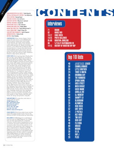 PUBLISHER/EDITOR-IN-CHIEF // Julia Beverly SPECIAL EDITION GUEST EDITOR // Jen McKinnon MUSIC EDITOR // Randy Roper FEATURES EDITOR // Eric N. Perrin ASSOCIATE EDITOR // Maurice G. Garland GRAPHIC DESIGNER // David KA ADVERTISING SALES // Che’ Johnson PROMOTIONS DIRECTOR // Malik Abdul MARKETING DIRECTOR // David Muhammad Sr. LEGAL CONSULTANT // Kyle P. King, P.A. SUBSCRIPTIONS MANAGER // Adero Dawson ADMINISTRATIVE // Kisha Smith INTERN // Kari Bradley CONTRIBUTORS // Alex Cannon, Bogan, Charlamagne the God, Chuck T, Cierra Middlebrooks, Destine Cajuste, Edward Hall, Felita Knight, Jacinta Howard, Jaro Vacek, Jessica Koslow, J Lash, Jason Cordes, Johnny Louis, Keadron Smith, Keith Kennedy, K.G. Mosley, King Yella, Luis Santana, Luxury Mindz, Marcus DeWayne, Matt Sonzala, Maurice G. Garland, Mercedes (Strictly Streets), Natalia Gomez, Ray Tamarra, Rico Da Crook, Robert Gabriel, Rohit Loomba, Shannon McCollum, Spiff, Stan Johnson, Swift, Thaddaeus McAdams, Wally Sparks, Wendy Day STREET REPS // 3rd Leg Greg, Adam Murphy, Alex Marin, Al-My-T, Benz, Big Brd, B-Lord, Big Ed, Big Teach (Big Mouth), Bigg V, Black, Bogan, Bo Money, Brandi Garcia, Brandon “Silkk” Frazier, Brian Eady, Buggah D. Govanah (On Point), Bull, C Rola, Cartel, Cedric Walker, Chad Joseph, Charles Brown, Chill, Chuck T, Christian Flores, Clifton Sims, Danielle Scott, DJ Dap, Delight, Derrick the Franchise, DJ Dimepiece, DJ D’Lyte, Dolla Bill, Dorian Welch, Dwayne Barnum, Dr. Doom, Dynasty, Ed the World Famous, DJ E-Feezy, DJ EFN, Episode, Eric “Crunkatlanta” Hayes, Erik Tee, F4 Entertainment, G Dash, G-Mack, George Lopez, Gorilla Promo, Haziq Ali, Hezeleo, H-Vidal, Hotgirl Maximum, Jae Slimm, Jammin’ Jay, Janiro Hawkins, Jarvon Lee, Jay Noii, Jeron Alexander, JLN Photography, Joe Anthony, Johnny Dang, Judah, Judy Jones, Kenneth Clark, Klarc Shepard, Kool Laid, Kurtis Graham, Kydd Joe, Lex, Lump, Lutoyua Thompson, Marco Mall, Mario Grier, Marlei Mar, DJ M.O.E., Music & More, Natalia Gomez, Nikki Kancey, Oscar Garcia, P Love, Pat Pat, Phattlipp, Pimp G, Quest, Quinton Hatfield, DJ Rage, Rapid Ric, Robert Lopez, Rob-Lo, Robski, Rohit Loomba, Scorpio, Seneca, Shauntae Hill, Sir Thurl, Southpaw, Spade Spot, Stax, Sweetback, Teddy T, TJ’s DJ’s, Tim Brown, Tony Rudd, Tre Dubb, Tril Wil, Trina Edwards, Troy Kyles, Vicious, Victor Walker, DJ Vlad, Voodoo, Wild Billo, Will Hustle, Wu Chang, Young Harlem, Yung DVS SUBSCRIPTIONS // To subscribe, send check or money order for $20 to: OZONE Magazine, Inc. Attn: Subscriptions Dept 644 Antone St. Suite 6 Atlanta, GA 30318 Phone: 404-350-3887 Fax: 404-350-2497 Website: www.ozonemag.com COVER CREDITS // Rick Ross photo (cover and this page); Plies photo by Bob Croslin; Trae & Z-Ro photo by SLFEMP; Flo Rida photo by Chad Griffith. DISCLAIMER // OZONE Magazine is published 11 times per year by OZONE Magazine, Inc. OZONE does not take responsibility for unsolicited materials, misinformation, typographical errors, or misprints. The views contained herein do not necessarily reflect those of the publisher or its advertisers. Ads appearing in this magazine are not an endorsement or validation by OZONE Magazine for products or services offered. All photos and illustrations are copyrighted by their respective artists. All other content is copyright 2008 OZONE Magazine, all rights reserved. No portion of this magazine may be reproduced in any way without the written consent of the publisher. Printed in the USA.