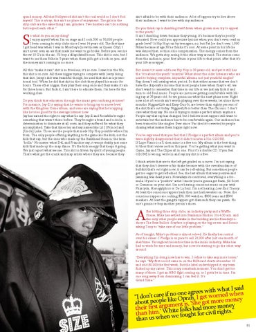 ain’t afraid to be with their audience. A lot of rappers try to live above their audience. I want to live with my audience. Do you think rap is dumbing itself down when grown men try to appeal to the youth? It ain’t dumbing down because they young, it’s because they’re poorly educated. How could you appreciate lyricist when you don’t even read on grade level? Is Hip Hop ran by teenagers, no, but Fat Joe don’t own 1,000 Nikes because at age 30 he thinks it’s cool. At some point in his life he was denied that, so this is his compensation. The energy comes from the audience. We gotta stop seeing it the other way around. The stories come from the audience, your first album is your life to that point, after that it’s your life as a rapper. But doesn’t it seem odd how Hip Hop is 30 years old, and yet it still has the “it’s about the youth” mantra? What about the older listeners who are used to buying complete, impactful albums, not just youthful singles? Rap doesn’t sell catalog-wise, period. So that either means that we don’t have the disposable income that most people have when they’re 40, we don’t want to remember that time in our life or we just say fuck it and turn to old Soul music. People are just now getting comfortable with liking rap at 35 years old. So we gonna see what the next phase now. Right now a lot of records ain’t worth playing over three weeks, let alone three months. Niggaz4Life and Eazy-Duz-It, are better than eighty percent of the shit that’s out today. Niggas4Life is better than The Chronic. I don’t care what they say. No one is trying to make a perfect album anymore. People say that rap has changed, but I believe most rappers still want to entertain but the audience has to be comfortable again. Our audience has been trained to like singles. Ever since ‘Pac died it’s reverted to people chasing what makes them happy right now. You’ve expressed that you feel that I Pledge is a perfect album and you’re were slightly disappointed that it didn’t receive a 5 in OZONE. If Lupe Fiasco is a 5, then mine is a five too. My album is the best thing to bless that review section this year. You’re getting what you want in Game, Jay and The Clipse all in one. Plus it’s a double CD. If you feel OZONE is wrong, write in and say my shit is a five. I think artists that are to the left get graded on a curve. I’m not saying that they don’t deserve a fair shake because with the overabundance of bullshit that’s out right now, it can be refreshing. But sometimes people get too eager to get refreshed. See, the last album that was positive and jamming was dead prez’s. Nowadays its contrived, everything is a formula. If you’re a “positive” artist I know you’re gonna get Badu, Jill Scott or Common on your shit. I’m not hearing conscious music on par with Pharcyde, Hierogylphics or De La Soul. I’m not hearing Low End Theory. At least the conscious rappers back then just had sweaters on. Now, the conscious rappers are rocking $30, 000 watches, $800 jeans and $300 sneakers. At least the gangsta rappers got diamonds they can pawn. No one’s gonna re-buy another person’s shoes.