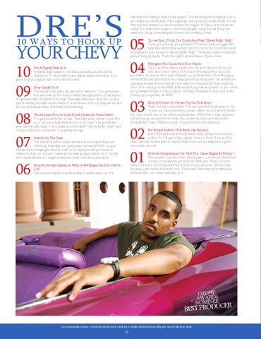 Put A Digital Dash In It A digital dash makes it look like a spaceship inside. If your Chevy is a ’71, they didn’t have digital dashes back then. You gotta drop in a digital dash so it looks futuristic. Drop Candy On It The candy is the paint job; we call it “wetness.” You gotta have that wet look on the donk so when the light hits it, it just shines. It’s gotta be wet. It’s gotta look crazy. That way, when you drop the top and you’re driving through on the beach or in the hood, if it’s 100 degrees out and the sun is shining down, that bitch is just shining.