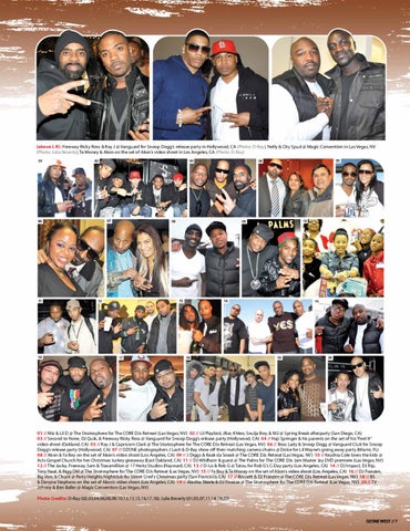 01 // Miz & Lil D @ The Stratosphere for The CORE DJs Retreat (Las Vegas, NV) 02 // Lil Playboii, JBar, Khleo, Soulja Boy, & M2 @ Spring Break afterparty (San Diego, CA) 03 // Second to None, DJ Quik, & Freeway Ricky Ross @ Vanguard for Snoop Doggâs release party (Hollywood, CA) 04 // Haji Springer & his parents on the set of his âFeel Itâ video shoot (Oakland, CA) 05 // Ray J & Capricorn Clark @ The Stratosphere for The CORE DJs Retreat (Las Vegas, NV) 06 // Boss Lady & Snoop Dogg @ Vanguard Club for Snoop Doggâs release party (Hollywood, CA) 07 // OZONE photographers J Lash & D-Ray show off their matching camera chains @ Dolce for Lil Wayneâs going away party (Miami, FL) 08 // Akon & Ya Boy on the set of Akonâs video shoot (Los Angeles, CA) 09 // J Diggs & Keak da Sneak @ The CORE DJs Retreat (Las Vegas, NV) 10 // Keyshia Cole loves the kids @ Acts Gospel Church for her Christmas turkey giveaway (East Oakland, CA) 11 // DJ Wildhairr & guest @ The Palms for The CORE DJs Jam Master Jay DVD premiere (Las Vegas, NV) 12 // The Jacka, Freeway, Sam & Traxamillion @ 17 Hertz Studios (Hayward, CA) 13 // D-Lo & Rob G @ Tatou for Rob Gâs C-Day party (Los Angeles, CA) 14 // DJ Impact, DJ Rip, Tony Neal, & Bigg DM @ The Stratosphere for The CORE DJs Retreat (Las Vegas, NV) 15 // Ya Boy & Te Money on the set of Akonâs video shoot (Los Angeles, CA) 16 // DJ Franzen, Big Von, & Chuck @ Party Heights Nightclub for Street Credâs Christmas party (San Francisco, CA) 17 // Roccett & DJ Franzen @ The CORE DJs Retreat (Las Vegas, NV) 18 // B5 & Devyne Stephens on the set of Akonâs video shoot (Los Angeles, CA) 19 // Aleshia Steele & DJ Finesse @ The Stratosphere for The CORE DJs Retreat (Las Vegas, NV) 20 // TV Johnny & Ben Baller @ Magic Convention (Las Vegas, NV) Photo Credits: D-Ray (02,03,04,06,08,09,10,12,13,15,16,17,18); Julia Beverly (01,05,07,11,14,19,20)