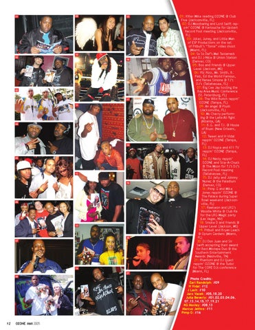 01: Killer Mike reading OZONE @ Club Five (Jacksonville, FL) 02: DJ Moodswing and Lord Swift reppin’ OZONE @ Kartouche for Upstart Record Pool meeting (Jacksonville, FL) 03: Joker, Junay, and Little Man of ESP Productions on the set of Pitbull’s “Toma” video shoot (Miami, FL) 04: So So Def’s Mel Testamark and DJ J-Nice @ Union Station (Denver, CO) 05: Boo and friends @ Upper Level (Jackson, MS) 06: Ric Ross, Mr. Smith, B. Paiz, Ed the World Famous, and Renee Simone @ TJ’s DJ’s (Tallahassee, FL) 07: Big Cee Jay hosting the Bay Area Music Conference (St. Petersburg, FL) 08: The Wild Bunch reppin’ OZONE (Tampa, FL) 09: An angel @ Plush (Jacksonville, FL) 10: Ms Cherry performing @ the Laila Ali fight (Atlanta, GA) 11: B.G. and T.I. @ House of Blues (New Orleans, LA) 12: Tweet and H Vidal reppin’ OZONE (Tampa, FL) 13: DJ Royce and 411 TV reppin’ OZONE (Tampa, FL) 14: DJ Nasty reppin’ OZONE and Skip-A-Chuck @ The Moon for TJ’s DJ’s Record Pool meeting (Tallahassee, FL) 15: DJ Jelly and Johnny Nunez @ the Paladium (Denver, CO) 16: Pimp G and Mike Jones reppin’ OZONE @ The Palace during Super Bowl weekend (Jacksonville, FL) 17: Raekwon and LRG’s Woodie White @ Club Ra for the LRG Magic party (Las Vegas, NV) 18: Smoke D and friends @ Upper Level (Jackson, MS) 19: Pitbull and Bryan Leach @ Opium Gardens (Miami, FL) 20: DJ Don Juan and Sir Swift accepting their award for Best Mixtape Duo @ the Southern Entertainment Awards (Nashville, TN) 21: Phantom and DJ Quest reppin’ OZONE @ the Tudor for The CORE DJs conference (Miami, FL) Photo Credits: Earl Randolph: #09 H Vidal: #12 J Lash: #10 Jaro Vacek: #05,18,20 Julia Beverly: #01,02,03,04,06, 07,13,14,15,17,19,21 KG Mosley: #08,13 Marcus Jethro: #11 Pimp G: #16 12