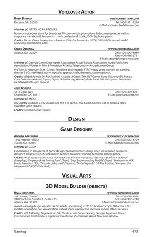 1846 Hebron Hills Dr Cell: (678) 612-4709 Tucker, GA 30084 E-Mail: hdiandrew@aol.com Member of: GGDA Experienced in all aspects of game design/production/consulting. Licensor, licensee, producer, designer, scriptwriter, QA, localization & more on award-winning & million-selling games. Credits: “Mall Tycoon” (Take Two), “Railroad Tycoon Mobile” (Oaysis), “Star Trek: Starfleet Academy” (Interplay), “Emperor of the Fading Suns” (Sega), “Sega Snowboarding Mobile” (Sega), “Warhammer 40K: Final Liberation” (SSI), “Dracula Unleashed” (Viacom), “Global Agenda” (Hi-Rez Studios), “Vampire: the Masquerade” (CCP/White Wolf).