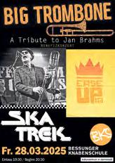 Viel zu früh ist Jan Brahms im Dezember 2024 verstorben. Als Musiker war Jan nicht nur in der hiesigen Szene eine zentrale Figur. Als Teil von international bekannten Ska-Größen wie Bad Manners, Skatalites oder The Busters ging der Klang seiner Posaune bereits in den 80ern um die Welt. In Darmstadt war er Mitglied der gefeierten Reggae-Band Ease Up Ltd. und der legendären Ska-Formation Ska Trek. Eben diese beiden Bands spielen an diesem Abend live, um an ihren verstorbenen Freund zu erinnern und um dessen Familie finanziell zu unterstützen. (mn)