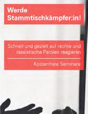 Dem anhaltenden Rechtsruck entgegenhalten und Position beziehen – dafür sind wir alle verantwortlich! Bei den Stammtischkämpfer:innen-Seminaren am 11.5. im Heinersyndikat Lincoln-Siedlung, am 12.5. im Glaskasten der h_da, am 25.5. bei „WohnSinn“ Kranichstein, am 25.5. im Kulturclub Sumpf und am 2.6. im DGB-Haus Darmstadt können wir üben, schnell und gezielt auf rechte und rassistische Parolen sowie Fake News zu reagieren. Ein ähnliches Training gibt es am 15.5. und 18.5. auch in der Postsiedlung (postsiedlung.de). (lm)