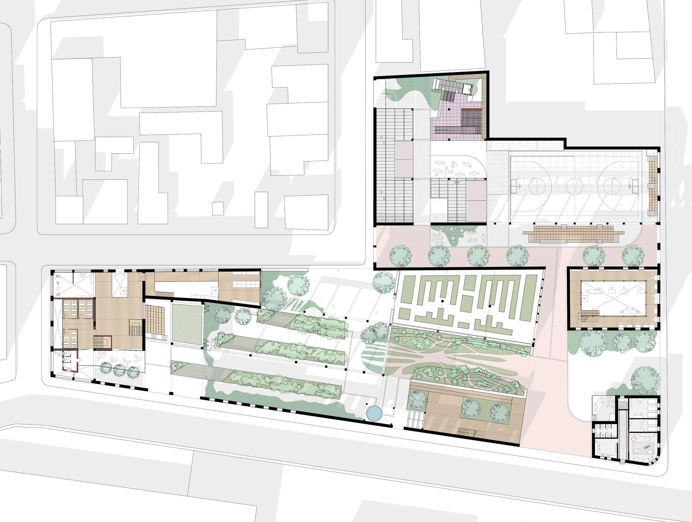 ηχοτοπίο θόρυβος Η περιοχή μελέτης βρίσκεται πολύ κοντά σε 3 διαφορετικές πηγές θορύβου, τα τρένα, την οδό Παπαδιαμάντη και τη 2ας Νοεμβρίου. Ο θόρυβος, σύμφωνα με τον χάρτη του συνολικού θορύβου του Κώστα Στεφανάκη, κυμαίνεται από τα 65 μέχρι τα 80 db, κάτι που σημαίνει πως είναι αδύνατον να μην ακούγεται καθόλου στο εσωτερικό του οικοπέδου, στους εσωτερικούς χώρους του οικοπέδου και στην ευρύτερη περιοχή γενικότερα. ηχογραφήσεις Για την καλύτερη κατανόηση αυτού του θορύβου ηχογραφούσα ανά τακτά χρονικά διαστήματα εσωτερικά αλλά και εξωτερικά του κελύφους. Τα σπεκτογράμματα των ηχογραφήσεων, μας δείχνουν πως οι ήχοι των αυτοκινήτων είναι οι δυνατότεροι σε ένταση, καθώς ακούγονται από όλες τι πλευρές του οικοπέδου με έμφαση στα σημεία 1, 2, και 6. Τα σπεκτογράμματα μας φανερώνουν και ένα άλλο ηχητικό στοιχείο. Στο υπόβαθρο ακούγονται κελαϊδίσματα δεκαοχτούρας και σπουργιτιών μαζί με τους ανθρωπογενείς ήχους της γειτονιάς όπως ομιλίες, μουσική, γέλια φωνές κ.α.. (σημεία 2,3,4,5). κελαϊδίσματα Το μπάσο, δηλαδή ο ήχος των αυτοκινήτων, υπερέχει όλων των υπόλοιπων ήχων της υπαρούσας σύνθεσης. Παρόλα αυτά οι ήχοι των πουλιών συνεχίζουν να υπάρχουν και να μάχονται κατά κάποιο τρόπο τους δυνατότερους ήχους. Σύμφωνα με τον Ρούπερτ Μάρσαλ(10) διαφορετικά είδη πτηνών κελαηδούν σε υψηλότερους τόνους στις πολύβουες περιοχές των πόλεων, επειδή προσπαθούν να ακουστούν πάνω από τους ανθρωπογενείς θορύβους που κατακλύζουν τις αστικές περιοχές. Από τις ηχογραφήσεις στις οδούς Γάτσου (σημείο 2), Θρακών (σημείο3) και Γλάδστωνος (σημείο 4) συμπεραίνουμε πως τα κελαϊδίσματα κυμαίνονται μεταξύ των 3.000 και 5.000 Hz και δεν ξεπερνούν τα 3 db. Οι συχνότητες των κελαϊδισμάτων που προαναφέρθηκαν, αν παρατηρηθούν σε ένα μουσικό κομμάτι αντιπροσωπεύουν συνήθως τα πιατίνια, τη φωνή και τη μελωδία. Τα κελαϊδίσματα, που ηχογραφήθηκαν περιμετρικά του κτιρίου, παίζουν τον ρόλο του ρυθμού και της μελωδίας στην παρούσα σύνθεση του ηχοτοπίου. μετασχηματισμός του ηχοτοπίου Υπάρχουν πολλοί τρόποι διαχείρισης του αυτοκινητιστικού θορύβου, όμως στη περίπτωση του μηχανουργείου δεν μπορούν να λειτουργήσουν όλοι. Η πιο κλασική μέθοδος είναι η κατασκευή φραγμάτων ήχου με τη μορφή τοίχου ή μιας επιφάνειας, η οποία απωθεί τα ηχητικά κύματα και τα οδηγεί προς την αντίθετη κατεύθυνση. Η συγκεκριμένη διαχείριση όμως θα μπλοκάρει την όψη στην οδό Παπαδιαμάντη. Τα φράγματα ήχου δεν γίνεται να έχουν κενά (εισόδους)