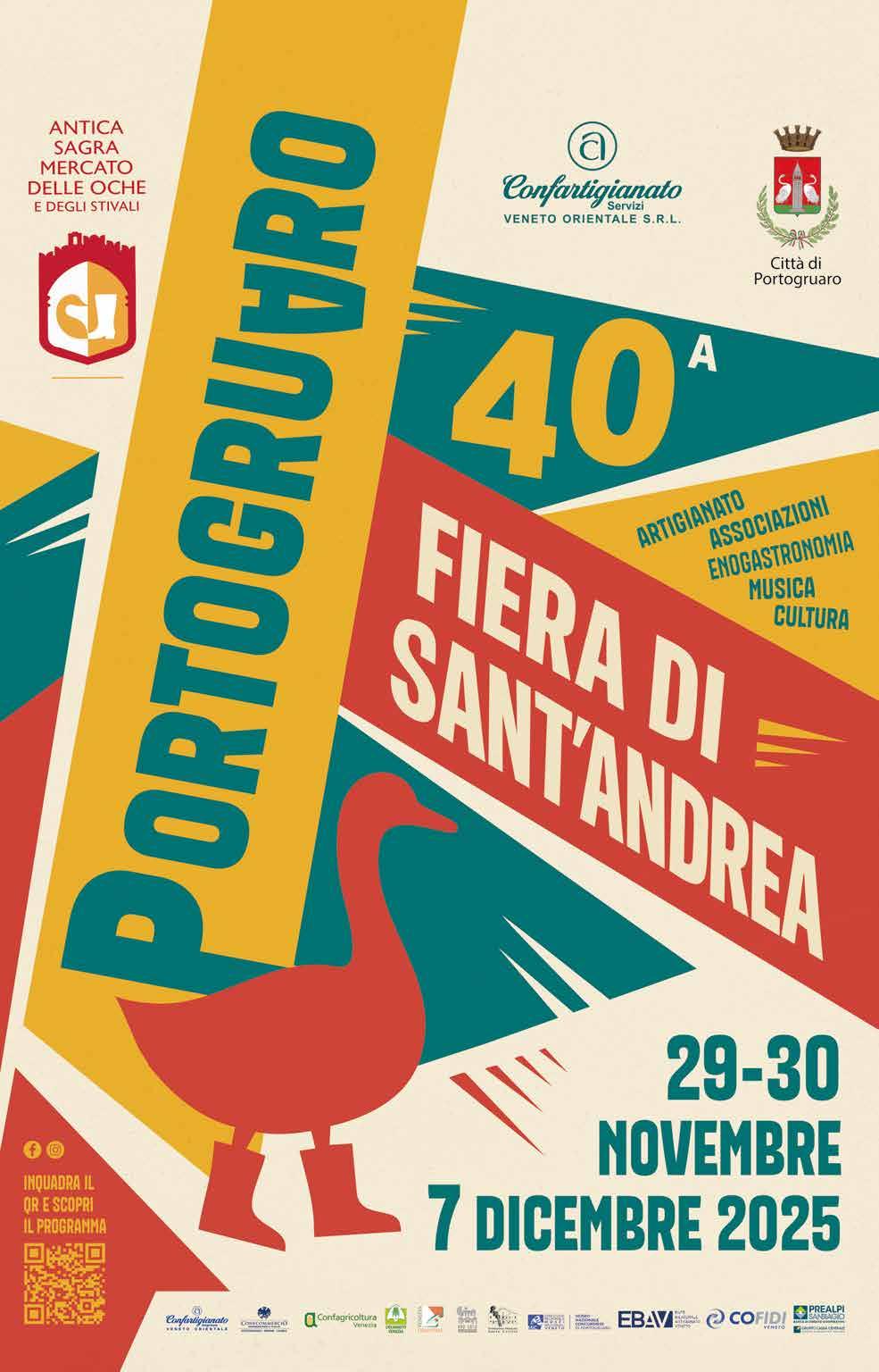 della moderna fiera cittadina, infatti vi si legge «Il Comitato tra le categorie economiche dell’Agricoltura, Artigianato e Commercio, rappresentato dal dott. Marcantonio Bolzicco, si è costituito a Portogruaro per riproporre nei giorni 29 e 30 novembre, la “Fiera di S. Andrea” conosciuta oltre cinquant’anni fa come la “Sagra Mercato degli stivali e delle oche”». Fondamento quindi della manifestazione, che non va perso di vista, è riprendere e valorizzare quell’aspetto legato all’artigianalità e allo scambio di prodotti della natura e del lavoro dell’uomo. Ecco perché tutt’oggi “Sant’Andrea” si connota per essere la più importante fiera e mercato della Venezia Orientale, oltre che occasione di valorizzazione delle produzioni locali. Ed è proprio per assolvere a questa importante missione che Confartigianato-Imprese Veneto Orientale da anni è impegnata in prima linea come soggetto organizzatore e gestore dell’evento, proponendo un articolato calendario di iniziative. Per il 2025, in cui la giornata fieristica della domenica cade tra l’altro esattamente con la festività del Santo Patrono della Città, Confartigianato presenta in particolare alcuni appuntamenti di valorizzazione delle eccellenze artigiane locali e della promozione del territorio: presso la Sala Colonne del Palazzo Municipale è possibile visitare l’esposizione “I bambini raccontano la Fiera” in cui l’Associazione Pro Loco Portogruaro espone i lavori realizzati dai bambini delle