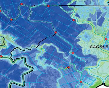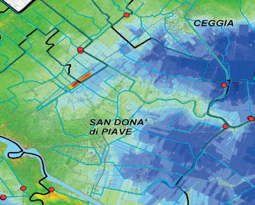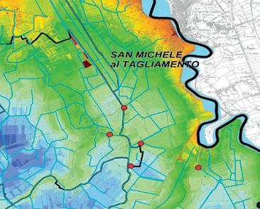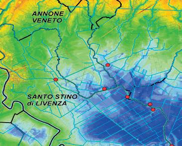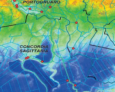 3) C’è una ingente rete di bonifica sotto il livello del mare – Nelle aree sotto il livello del mare (70% del Veneto Orientale) il territorio è mantenuto asciutto artificialmente da 89 impianti idrovori gestiti dal Consorzio di Bonifica, che sollevano 439 mila litri d’acqua al secondo. Alcuni centri, soprattutto quelli storici, si trovavano già a +3 metri sopra il livello del mare; altre aree urbane degli stessi centri, come suggerisce spesso la toponomastica (vedi il “Palù” a Portogruaro), erano zone di palude, rese asciutte solo successivamente