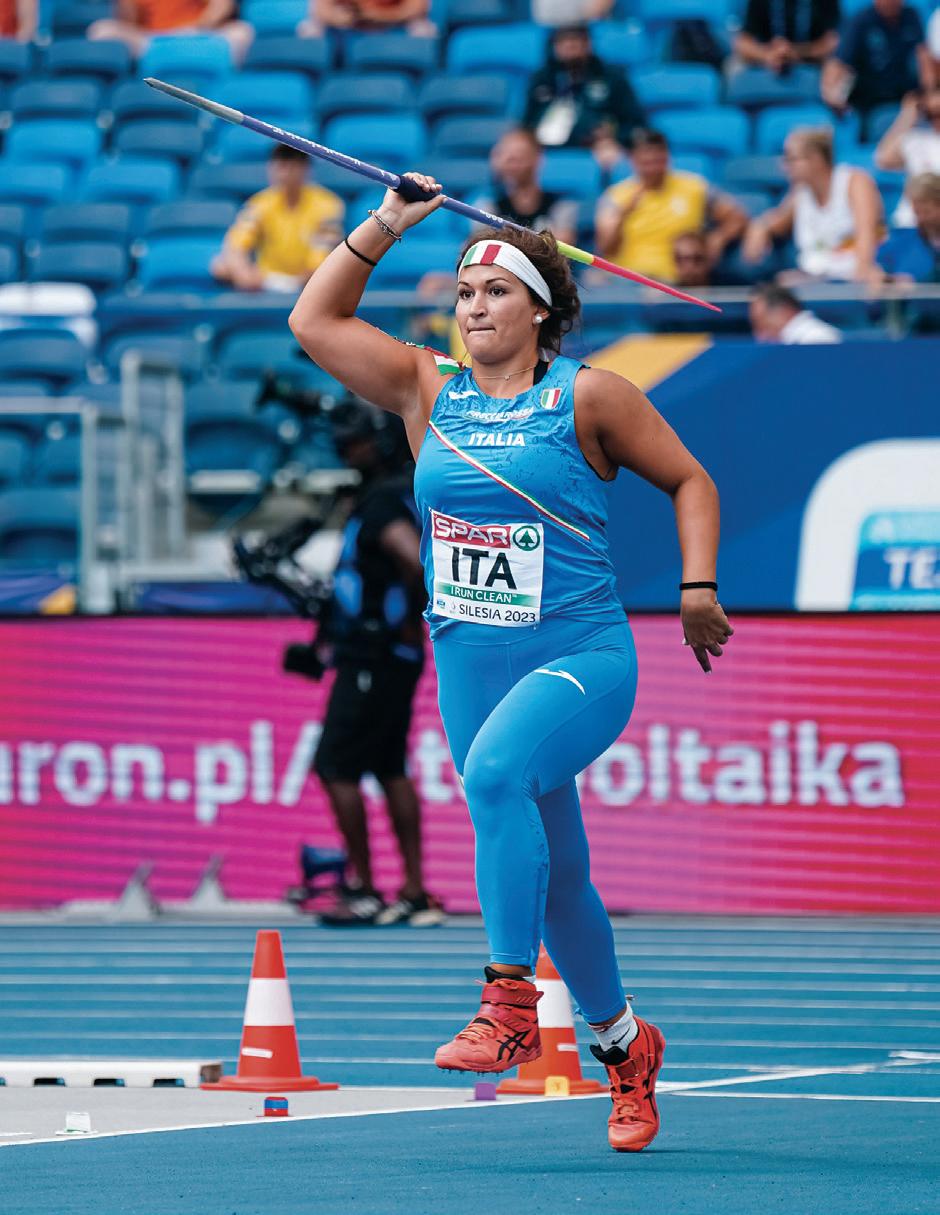 “Esplosività”. Bisogna essere esplosivi, con le braccia e con le gambe. Se non sei esplosivo l’attrezzo (il giavellotto, ndr.) non vola. “Volo”, mentre il giavellotto vola capisco già se è un buon lancio o meno, sento il rumore che fa o vedo l’inclinazione che prende, controllo come il vento lo fa volare. Bisogna avere tanta sensibilità in questa disciplina, perché come l’attrezzo atterra si riflette subito la tecnica che ho utilizzato nel lanciarlo. Mi ricordo quando ho fatto il mio record personale di 58 metri, appena ho lasciato il giavellotto ho capito fin da subito che era un buon lancio. Infine, “forza”, quando lo lancio devo essere sicura di me stessa.