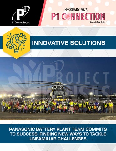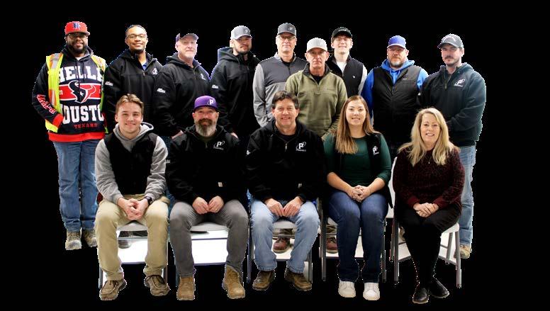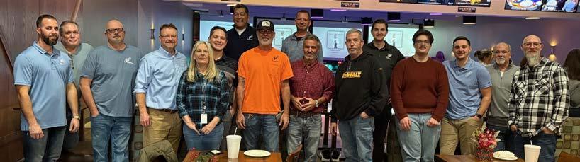 THE GANG’S ALL HERE: P1’s Building Technologies celebrated the new year with a bowling get-together, and what growth the team has had in recent years! Cheers to many more. Pictured, from left: Michael Green, Project Engineer; Mark Rau, Client Development Manager; Dustin Raines, General Foreman; Danny Farnan, Operations Manager; Kim Clary, Technologies Coordinator; Morgan Lassise, Accounting Manager; Dave Becerra, Project Manager; Andy Hess, General Foreman; Travis Fleming, Senior Integrated Solutions Manager; TJ Stevens, Integrated Solutions Manager; Mike Gordy, General Foreman; Ryan Walkowiak, Technologies System Engineer; Dylan Elzey, Project Coordinator; Dylan Walters, Project Engineer; Jeff Dallas, Senior Program Manager; and Jason Baird, Estimator