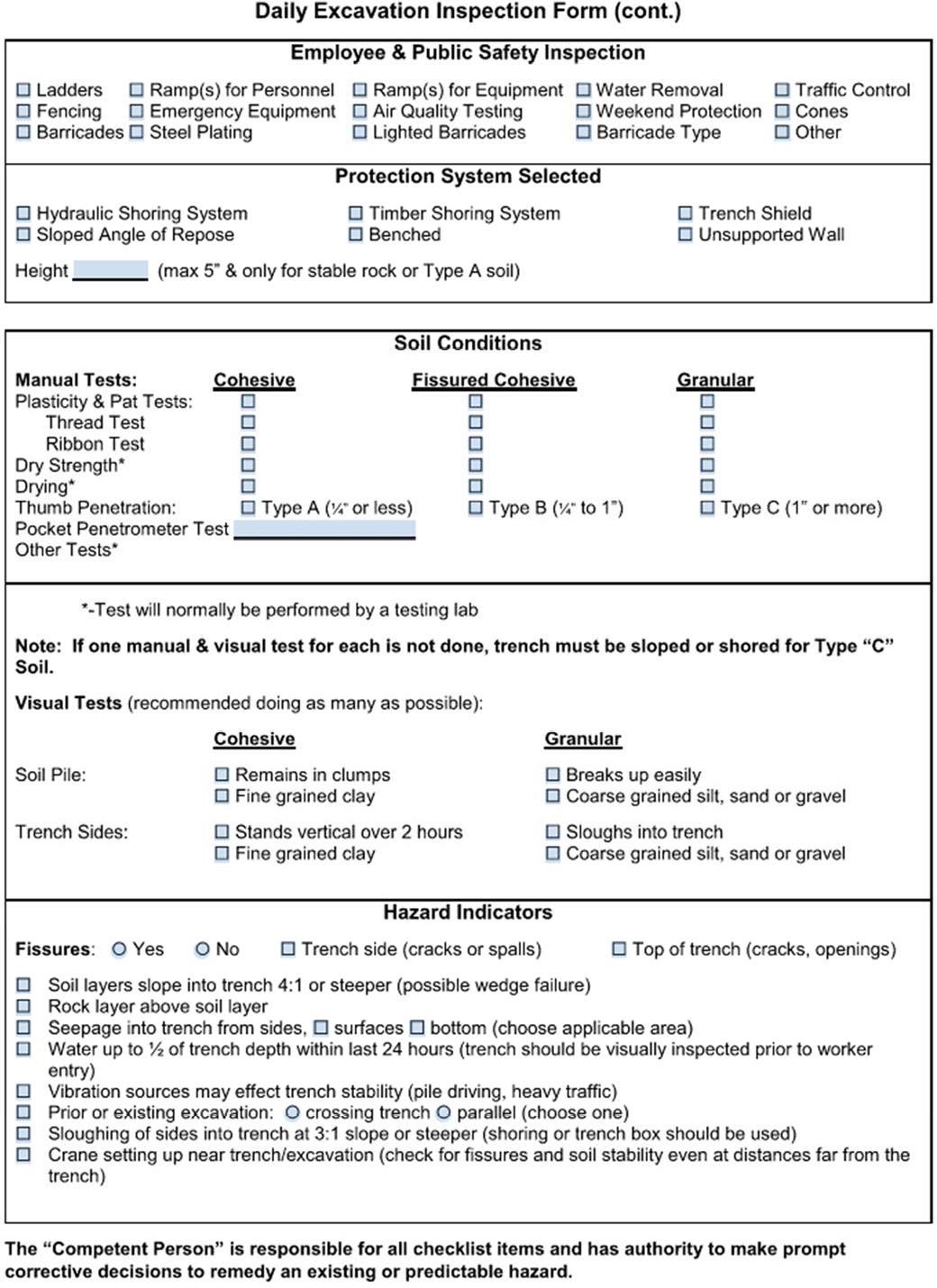 d. Depending on the project scope and the site conditions, the Competent Person can range in qualifications from a Foreman to a registered Professional Engineer.