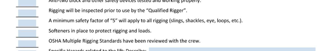 Major excavating, shoring and rigging plans and procedures involving hazards to workers, materials, equipment, or adjacent property shall be reviewed. A member of the Safety Support Staff shall assist as needed in securing insurance company or professional engineer review if required.