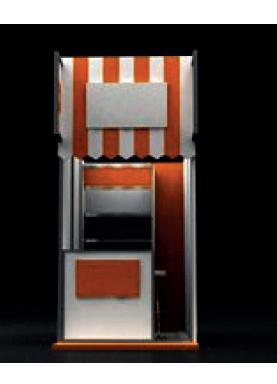 Opciones de stand resuelto que facilitan tu participación. Incluye impresión de gráficas, mobiliario (sillas, escritorio y estantería), armado y desarme.