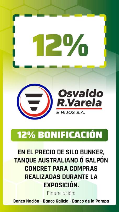 • En el espacio del BBVA habrá una calificación online de hasta $1000 millones, para que se puedan concretar los negocios en la muestra. Presentará más de 80 convenios a tasa subsidiada en pesos y dólares para compra de maquinaria agrícola y camiones con plazos de hasta 60 meses y amortizaciones acordes a cada producción, y más de 60 convenios con tasa subsidiada para compras de insumos, mediante el uso de la tarjeta Visa BBVA Agro, entre otras opciones.