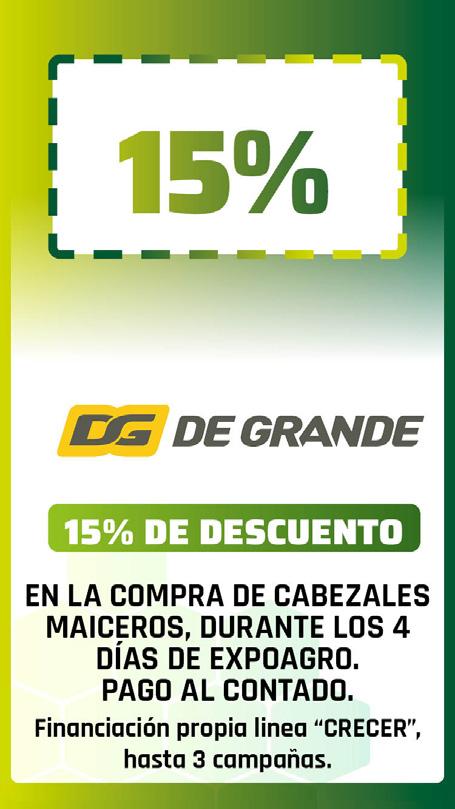 • Banco Nación tendrá una propuesta destacada, que incluye diversas opciones de financiamiento, respaldadas por más de 1.000 convenios con fabricantes de maquinaria agroindustrial. Además, ampliará la oferta de financiamiento con condiciones especiales, incluyendo nuevos destinos, con el objetivo de satisfacer las crecientes necesidades de inversión del sector. Con la tarjeta AgroNación también ofrecerá tasas especiales, gracias a las alianzas comerciales con diversos proveedores. Actualmente, Banco Nación cuenta con más de 230 convenios.